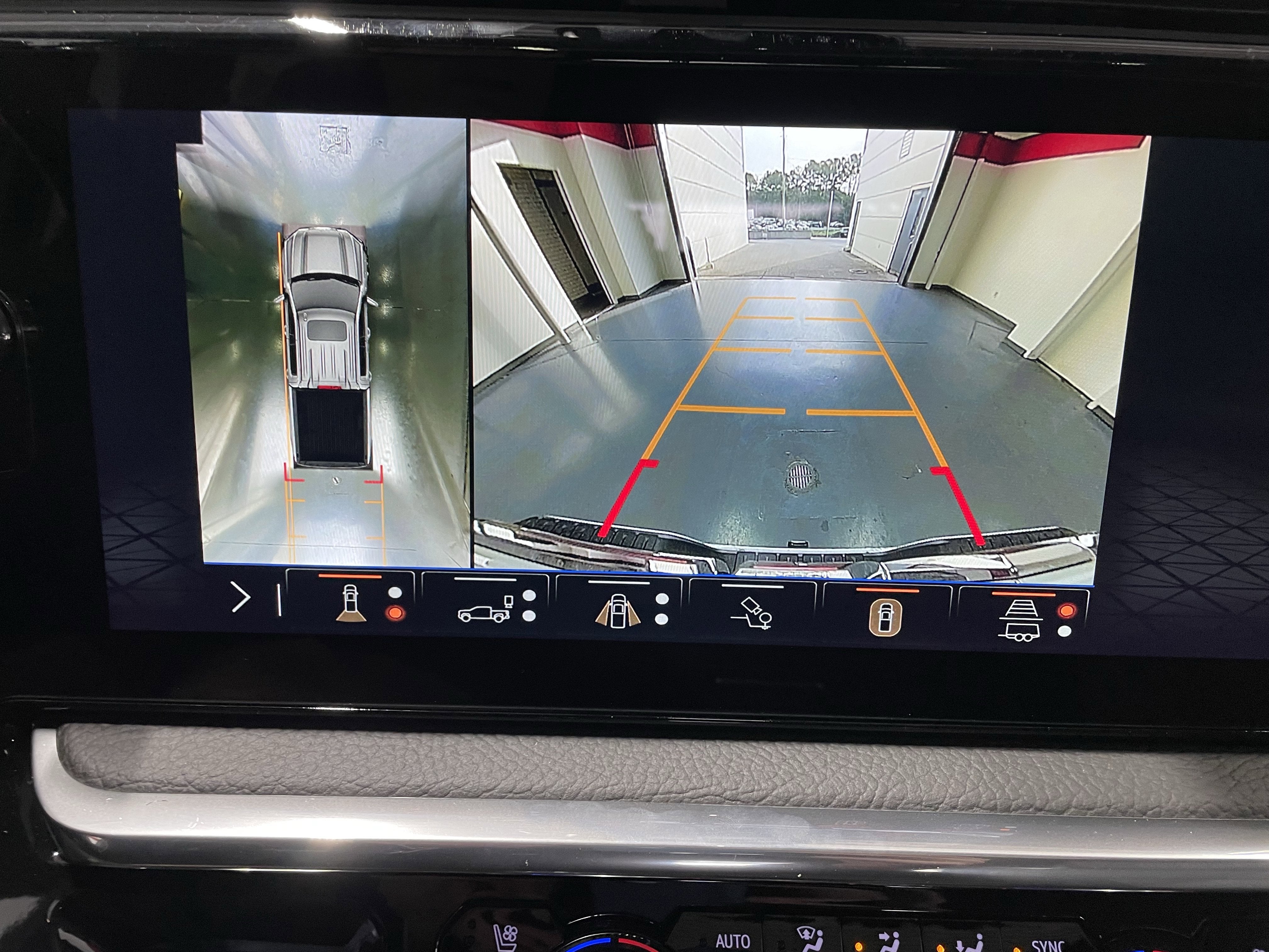 - Allows driver to see inside the cargo bed on the infotainment display to help with 5th wheel or gooseneck hitching and to check cargo